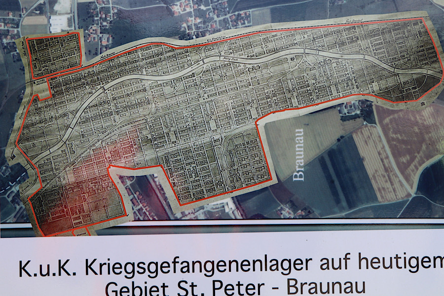 Kurz nach Beginn des 1. Weltkrieges standen die Verantwortlichen in den kriegführenden Ländern vor dem Problem, wie mit der unerwartet großen Zahl der Kriegsgefangenen umzugehen sei. Anfänglich wurde versucht, sie in militärischen Unterkünften unterzubringen, bald jedoch entschloss man sich, eine Reihe von großen Internierungslagern einzurichten. So wurde auch im oberösterreichischen Braunau das k.u.k. Kriegsgefangenenlager gebaut, in dem Kriegsgefangene aus Russland, Serbien und Italien untergebracht waren. Daneben bestand auch das k.u.k. Flüchtlingslager Braunau am Inn.