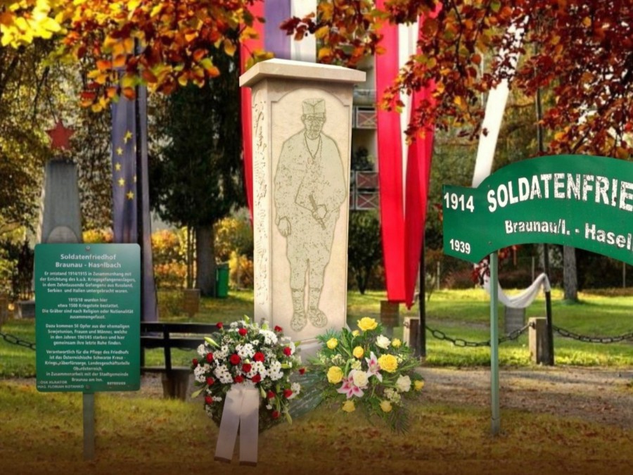 Der Soldatenfriedhof, dessen Gesamtfläche ca. 12.000 m² umfasst, ist das einzige sichtbare Monument, das an seine verstorbenen Insassen erinnert. So ist heute der Friedhof die Stätte des Gedenkens, die zum Nachdenken einlädt. Nach Angaben des Historikers Florian Kotanko wurde 1915 für die Todesopfer des Internierungslagers Braunau–Haselbach ein eigener Friedhof errichtet, in dem bis 1918 in etwa 1.500 Russen, Italiener, Österreicher, Serben, Ungarn sowie Unbekannte aus dem 1. Weltkrieg bestattet wurden. Zu den Toten aus dem Ersten Weltkrieg kommen 56 Opfer des Zweiten Weltkrieges – Frauen und Männer aus der Sowjetunion – welche in den Jahren 1941 bis 1945 als Zwangsarbeiter starben.
