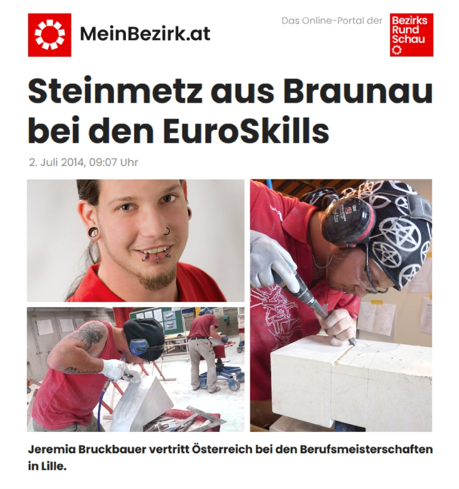 „Österreichs beste Nachwuchskraft am Stein ist Jeremia Bruckbauer“, berichtete eine Wochenzeitung über den jungen Kunststeinmetz aus Braunau, der bei der Berufseuropameisterschaft EuroSkills 2014 in Frankreich Silber erkämpfte.