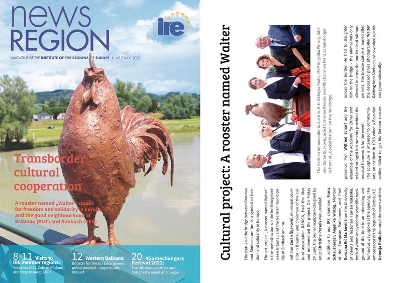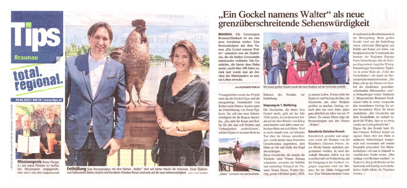 Am 24. Juni 2022 wurde auf der Innbrücke zwischen Braunau und Simbach ein Symbol für den Zusammenhalt der Region in Form einer Bronze-Statue feierlich enthüllt.