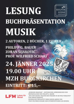 Ein weiterer Teilnehmer des Programms war Philip G. Bauer, Leiter des Gemeindearchivs in Burgkirchen und Autor des Buches „Kurioses Braunau“. Der Veranstalter des musikalisch-literarischen Abends war die „KulturSzene Burgkirchen“.