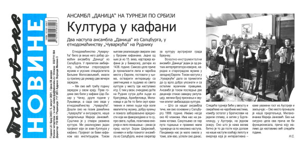 Celovečernji program KULTURA U KAFANI izvodi se od 2009. god a gostovao je u mnogobronim gradovima Evrope. Naziv programa preuzet je od istoimenog scenskog prikaza, premijerno izvedenog u Austriji, koji je svojevremeno obrađivao istodobnu tematiku. Program ima za cilj: