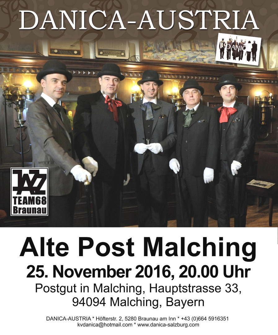 Das TEAM68 freut sich auf die nächste Veranstaltung in der „Alten Post“, Malching mit dem Musikensemble DANICA-AUSTRIA