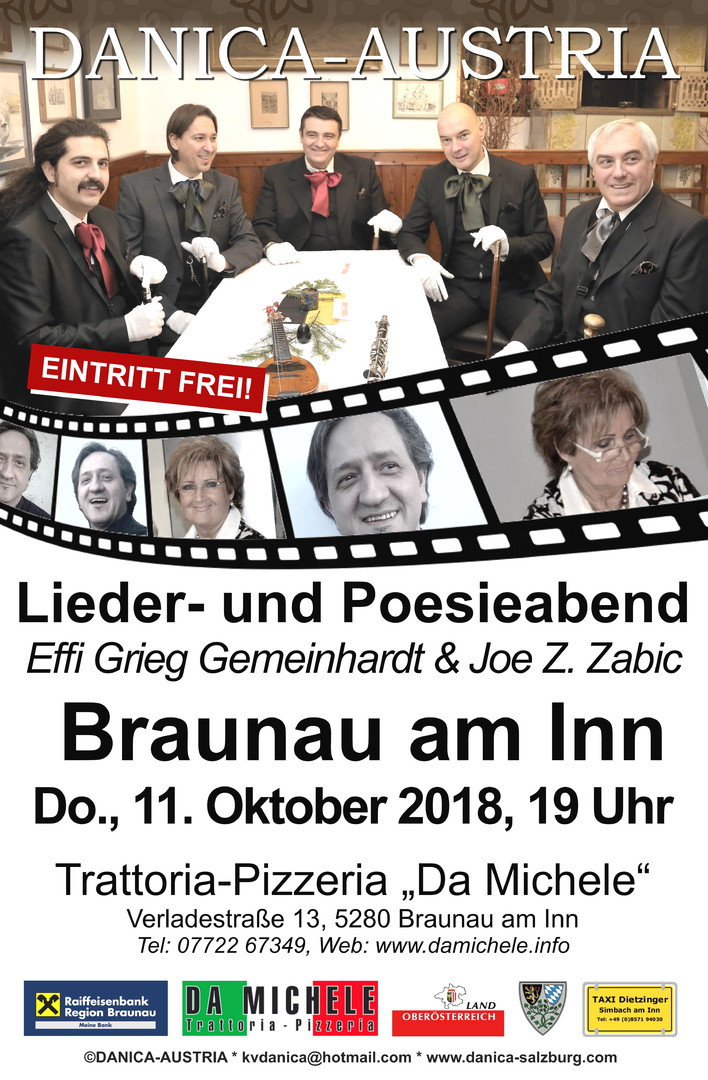 KULTUR IM WIRTSHAUS, ist eine vom Kulturverein DANICA initiierte Veranstaltungsreihe, die seit dem Jahr 2012 österreichweit erfolgreich präsentiert wird. Nach dem letztjährigen Erfolg, findet in Braunau wiederholt eine Veranstaltung statt, dieses Mal in der Braunauer Stadtteil Laab.