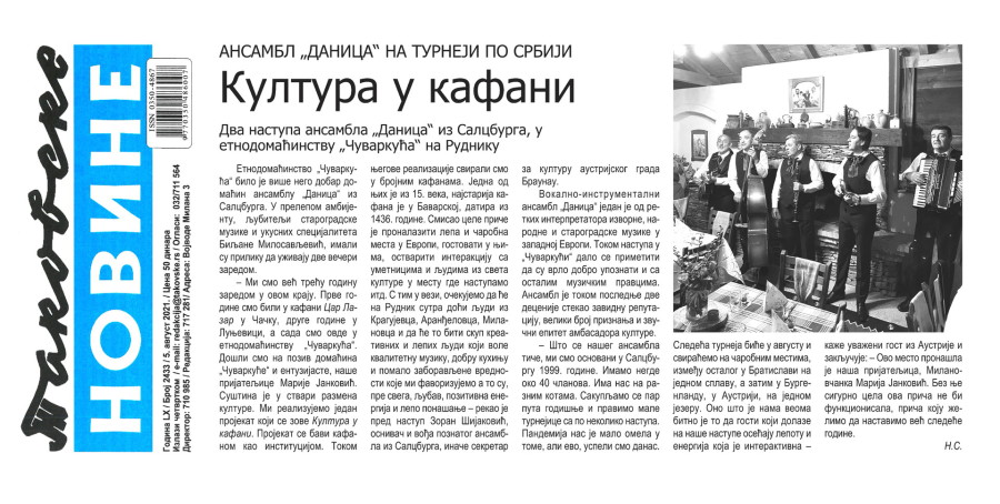 Gostovanje povodom dvadesetogodišnjice postojanja ansambla DANICA, Čačak 2019. U organizaciji Zavičajnog društva “Čačani”, Kafana „Car Lazar“ Čačak, Srbija