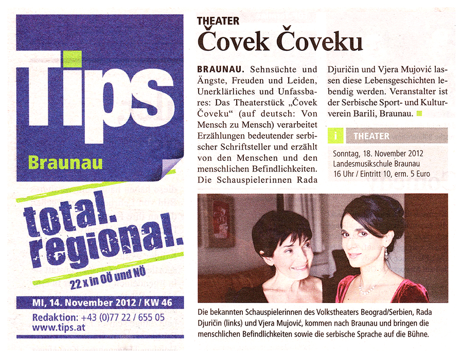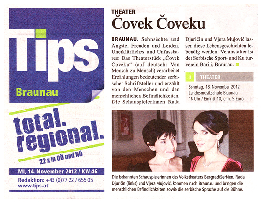 Theateraufführung: „ČOVEK ČOVEKU“ (Von Mensch zu Mensch)