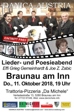 Poesiebeiträge von Autorin Effi Grieg Gemeinhardt und Poeten Joe Z. Zabic, untermalt mit der Musik des Ensembles DANICA-AUSTRIA