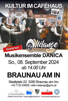 Die Interpreten des Musikensembles DANICA-AUSTRIA sind zum Großteil aus dem ehemaligen Jugoslawien stammende Musiker, die mit viel Enthusiasmus traditionelle Lieder des südosteuropäischen Kulturraumes, altstädtische Romanzen, Serenaden des Mittelmeeres pflegen und spielen. Das Musikensemble DANICA-AUSTRIA ist ein gern gesehener Gast bei verschiedensten Veranstaltungsreihen, Kultur-und Musikfestivals europaweit>>>