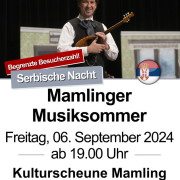 Ein gelungenes Gastspiel des Kulturbotschafters in der „Mamlinger Kulturscheune“. Unter dem Motto „Die Serbische Nacht“ wurde das Publikum auf eine inspirierende Musikreise durch Südosteuropa mitgenommen.