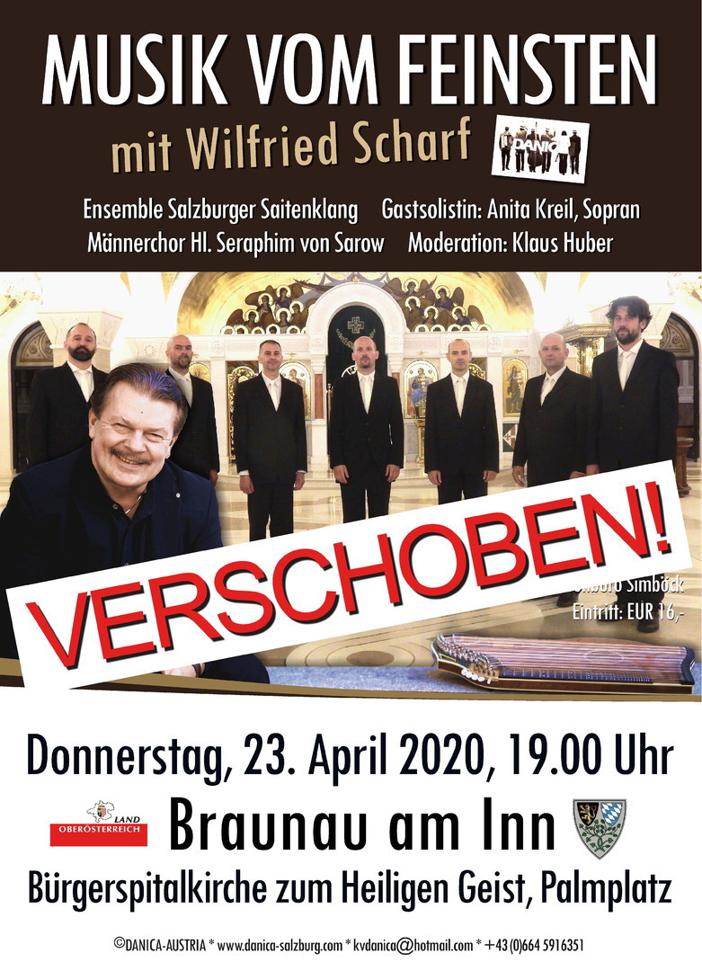 Dazu lädt DANICA-AUSTRIA zwei außergewöhnliche Musikinterpreten zu einem Konzertabend unter dem Motto „Annäherung durch Musik“ ein: den Männerchor „Hl. Seraphim von Sarow“ aus Zrenjanin, Serbien sowie das Musikensemble Salzburger Saitenklang mit dem Braunauer Zithervirtuosen Univ. Prof. Wilfried Scharf.
