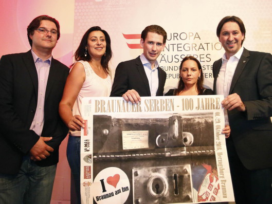 Завиша Ђордјевић, Емина Јевремовић, Министар иностраних послова Реп. Аустрије Себастиан Курз, Милена Тодоровић и Зоран Шијаковић