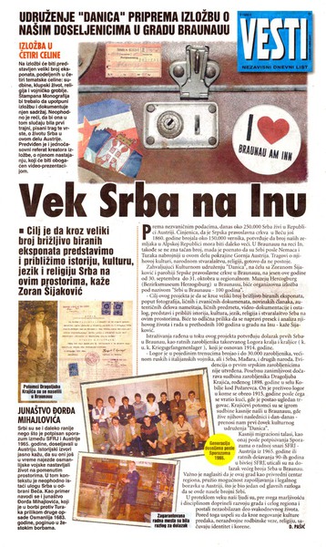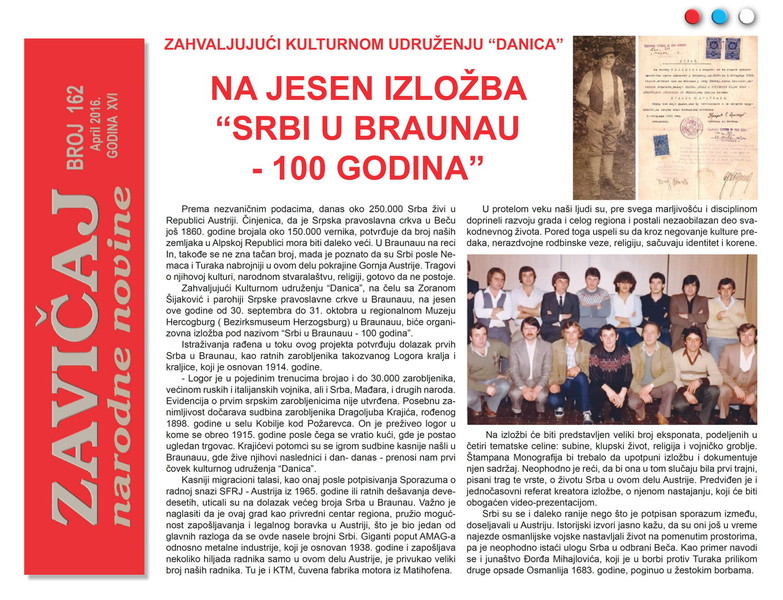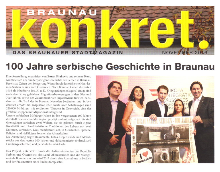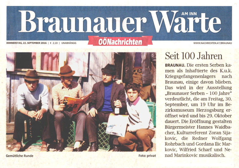 Удружење ДАНИЦА-АУСТРИА употпунило је 18. новембра 2016. год. у просторијама културног центра, музејском поставком „Срби у Браунау - 100 година“, постојећи програм фестивала.