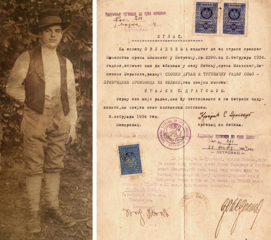 Драгољуб Крајић и његово овлашћење о обављању трговачке делатности из 1934. год.