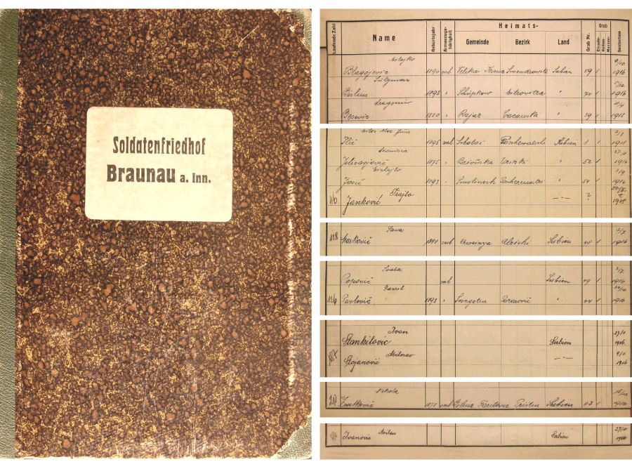 (Das Totenbuch des „k. u. k. Kriegsgefangenenlagers Braunau“, ÖSK, Gordana Ilić Marković)