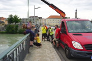 Probno postavljanje skulpture na gelender mosta između Austrije i Nemačke