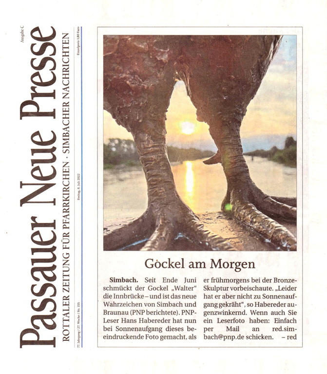 Izveštaj o ovom neobičnom dogadjaju objavljen je na naslovnoj strani tadašnjih dnevnih novina "Neuigkeits-Welt-Blatt", 29. juna 1918. god. Na njegovu stogodišnjicu a zahvaljujući lokalnom fotografu i novinaru Gajring Valteru (Walter Geiring, 1965-†2020), ugledao je ponovo, ovoga puta u novinama „Oberösterreichische Nachrichten“- “Vor 100 Jahren brachte Gockel an Grenze Amtsschimmel zum Galoppieren“, svetlost dana i tako postao poznat široj javnosti.